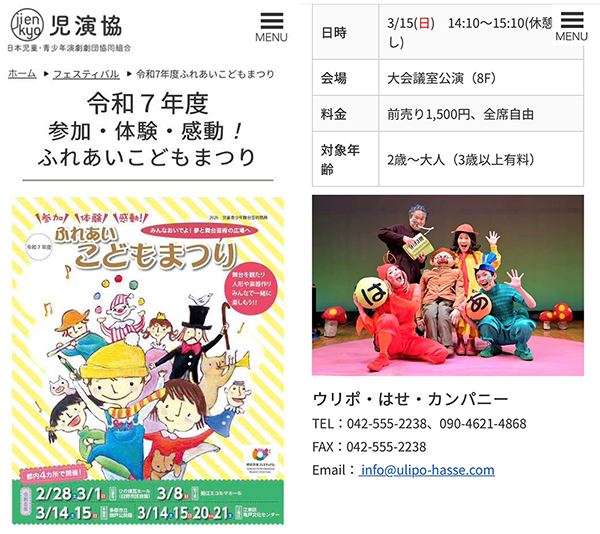 ★お申し込みは、お電話、FAX、メールにて、ウリポ・はせ・カンパニーにご連絡ください。ふれあいこどもまつり実行委員会に直接でも大丈夫です